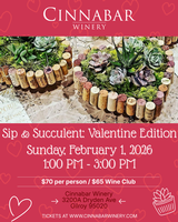 Celebrate Valentine’s season with a creative and relaxing afternoon at Cinnabar Winery! Join us in welcoming The Succulent Experience for a Heart-Shaped Cork & Succulent Planter Workshop, guided by instructor Michelle.